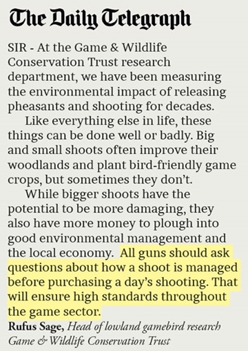 Our advisory staff spend time improving the positive effect good game management can have on the birds, bees and butterflies around shoots, but the people inviting them are doing so because they already understand the importance of good management. Only pressure from the outside will change those currently failing to do so.