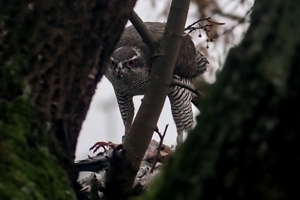 Although we consider goshawks to be birds of the forest, in other parts of Europe they can be found in urban settings, perching in trees and on streetlights, catching feral pigeons, squirrels and rats. A friend of mine lives in Berlin (one of Europe’s most wooded cities) and regularly watches goshawks right outside his kitchen window while they use the nearby trees as their plucking posts – or they watch him, as he says, with their menacing stare! Apparently, there are about 100 pairs in the city, and did you know Berlin boasts the highest density of goshawk territories anywhere in the world – urban or rural!